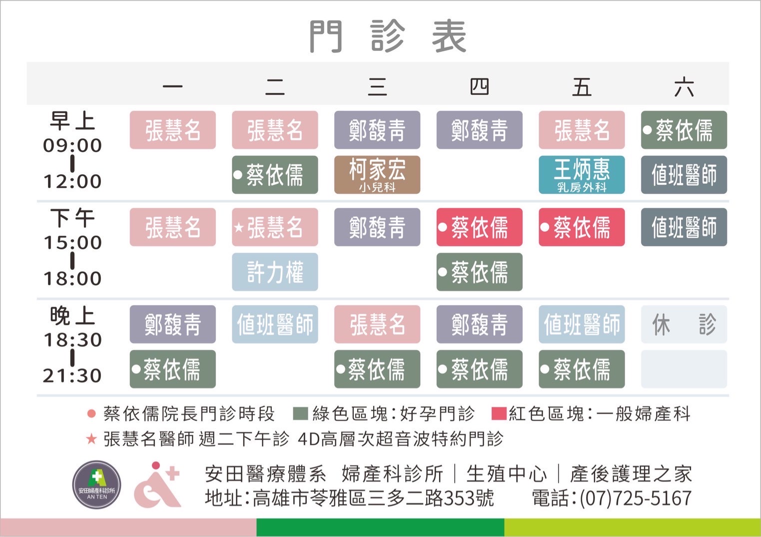 【安田醫師團隊】門診表 NEW! 2025/07/18起